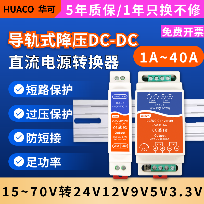导轨式直流DCDC变压模块48V36V24V转12V9V5降压转换3A5HC4101 02